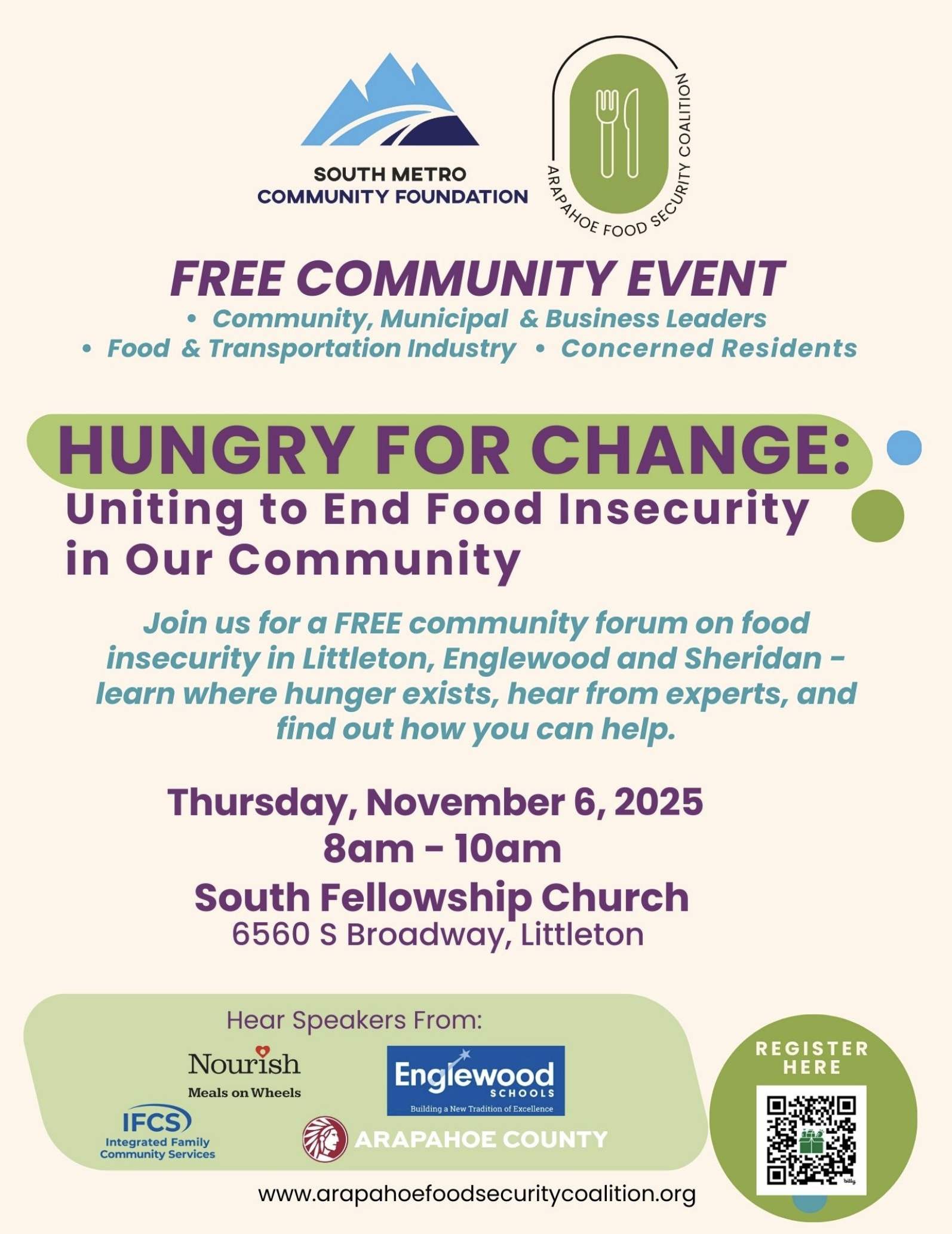 Join friends and neighbors when the Arapahoe Food Security Coalition and its partners present a free community forum on food insecurity in Littleton, Englewood and Sheridan.